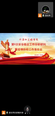 11月8日下午,计算机工程学院通过腾讯会议召开本周安全稳定风险研判会。会议由学院党委第一负责人王士杰主持,安全稳定专班成员参加会议。