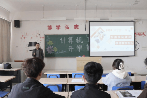 为了深入学习贯彻习近平新时代中国特色社会主义思想和党的二十大精神,落实好立德树人根本任务,2024年3月26日下午,计算机工程学院副院长张海亮以“加强学风建设,推进教学相长”为题,为同学们讲授开学第一课,在校班级学生代表参加学习。